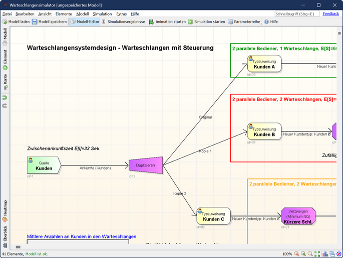 - Modellierung im Warteschlangensimulator: